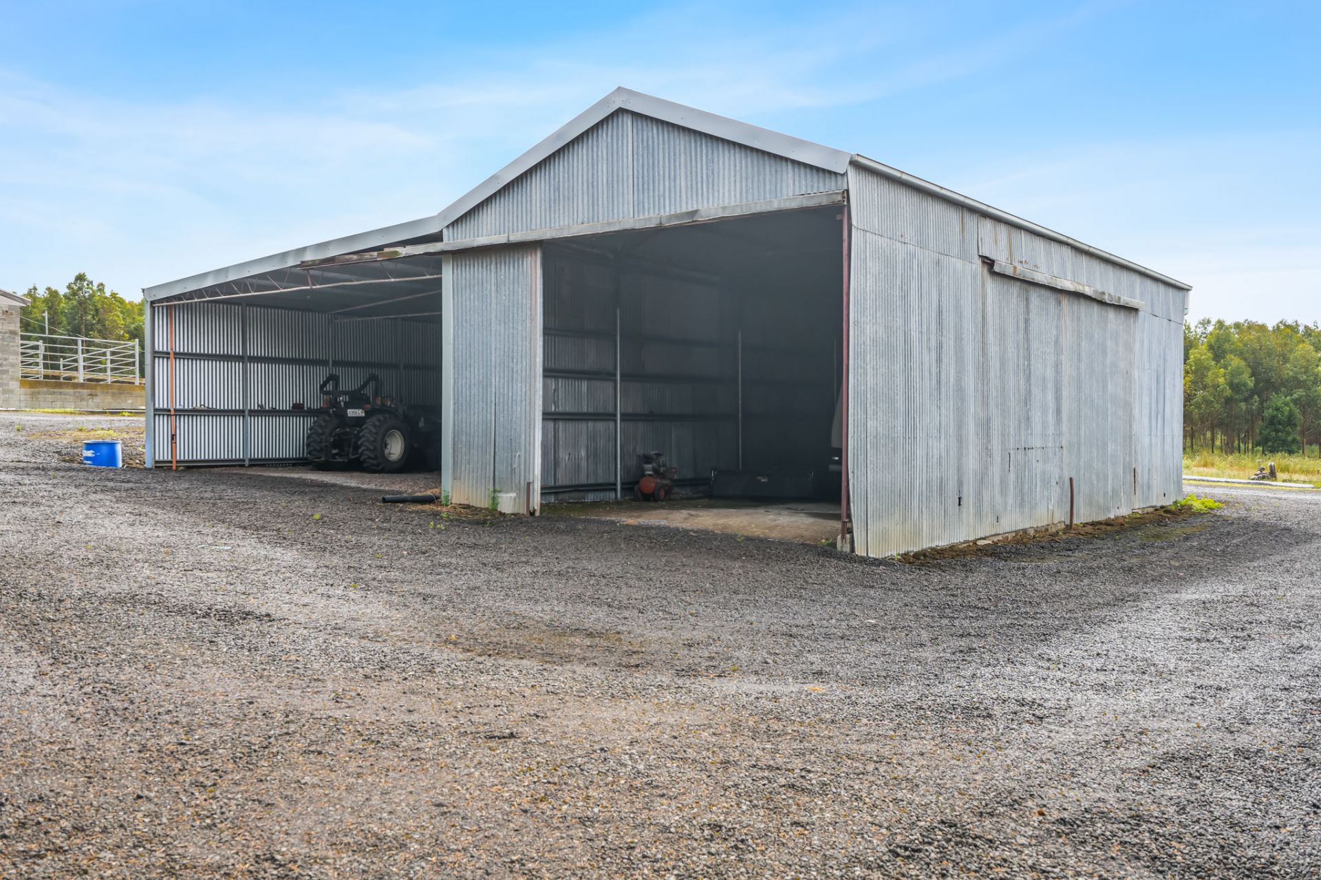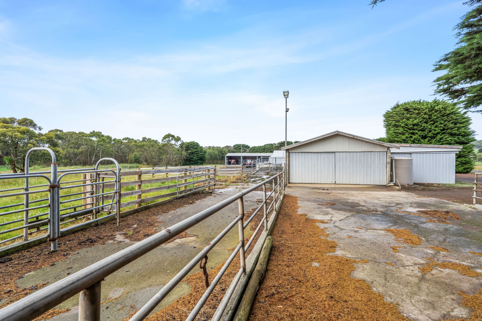 Outside there are numerous sheds, firstly we have a four car fully lock up garage with full concrete floor and power connected, a workshop lock up with concrete and power, 3 bays, Machinery Shed 24m x 10m, a 6 car garage in the converted dairy all lock up concrete floor and power, another Machinery or Caravan shed extra high and an huge amount of hardstand (all bluestone) you could turn a B double around.