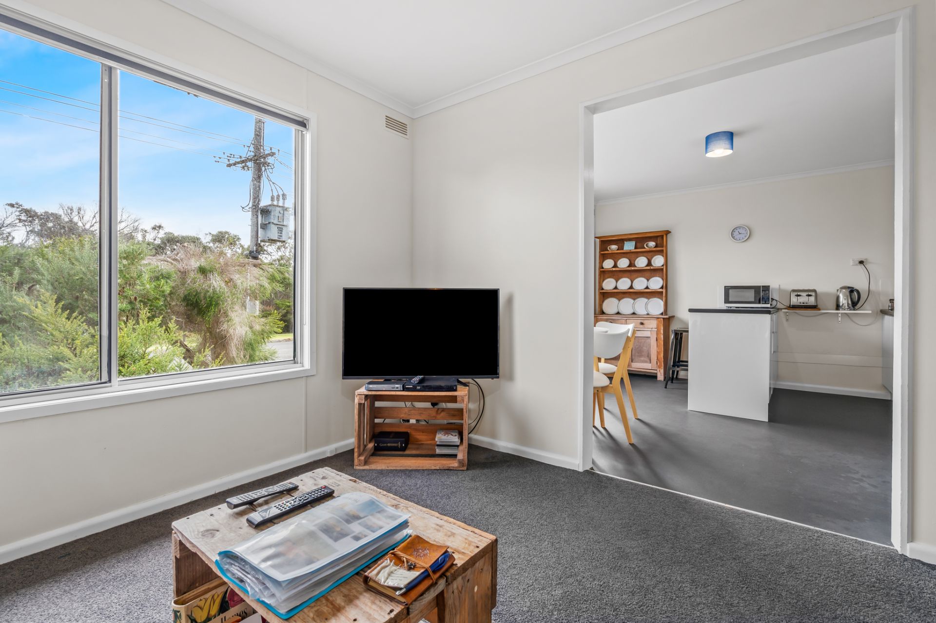The home offers a kitchen and dining area, separate living, two double bedrooms, central bathroom and numerous spots depending on the weather to enjoy the outdoors.