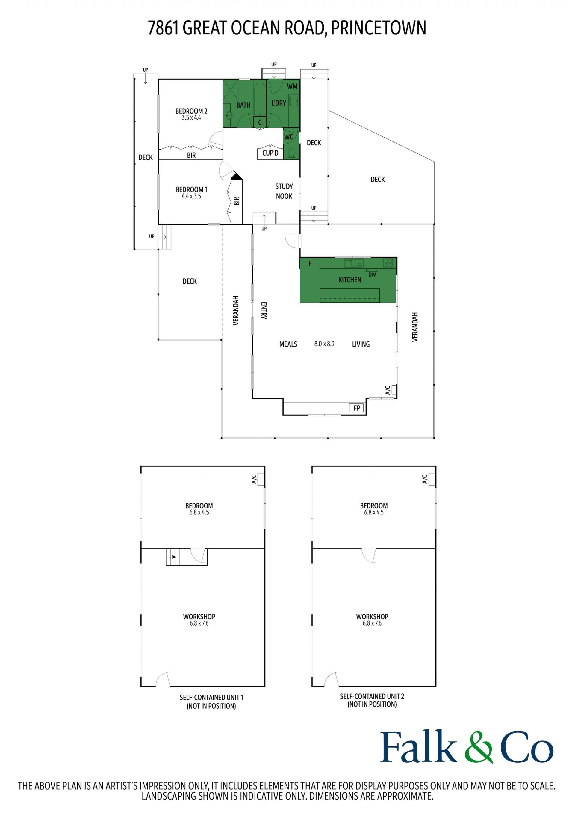 No 2; Includes a bedroom with living room and reverse cycle air-conditioning. Plus, an adjoining 12.1 x 6.8m, double roller doors.