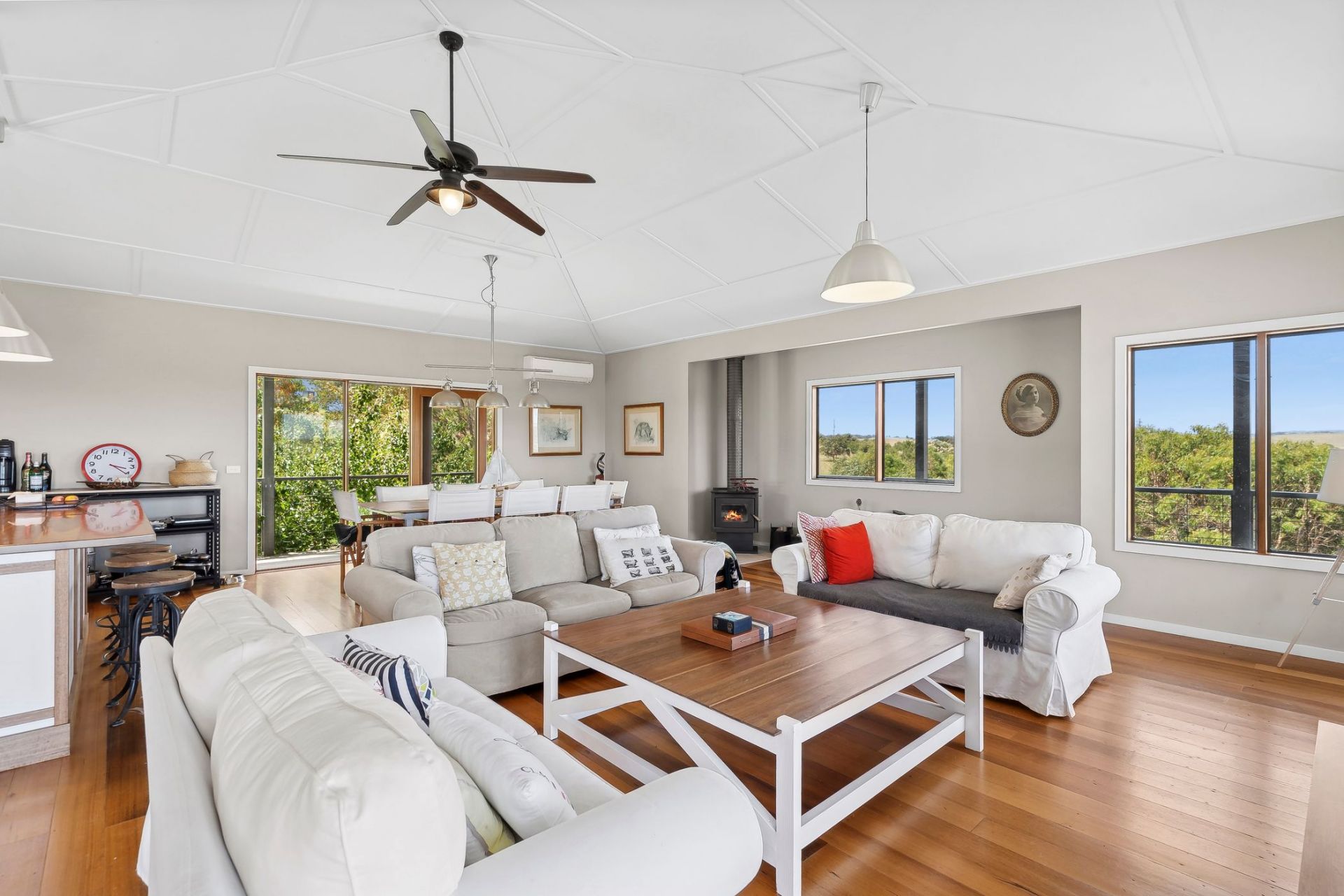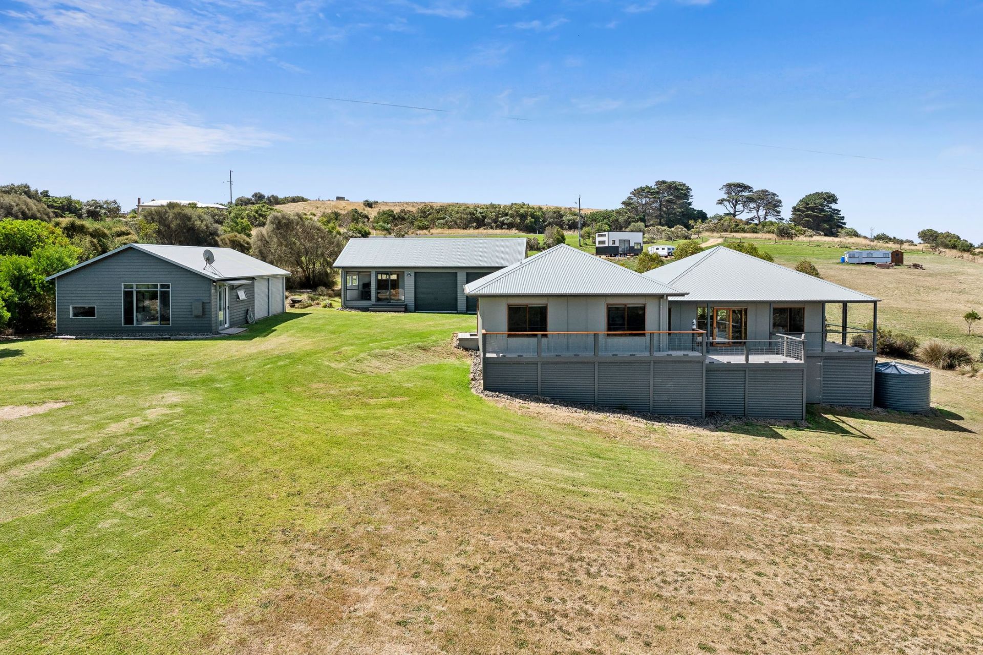 This immaculate property with views to the Southern Ocean could be your family coastal retreat or permanent home. This property must be seen to be fully appreciated; the cleverly designed home offers a superb light filled open plan Kitchen living and dining all overlooking the Princetown's wetlands and beyond. There are two very generous bedrooms both with views and a central bathroom along with veranda's all round. The home is heated and cooled by a split system and a wood heater in the living and the double-glazed windows throughout. As you can see by the photos the kitchen and bathrooms are all premium quality and superbly crafted. Polished floorboards throughout the main residence, boasting gas and electric cooking.
