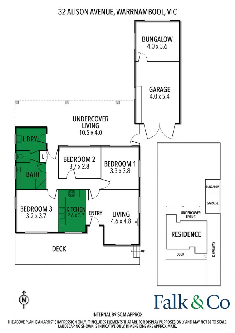 - Large deck overlooking the ocean and large undercover area at rear, north facing onto large rear yard.