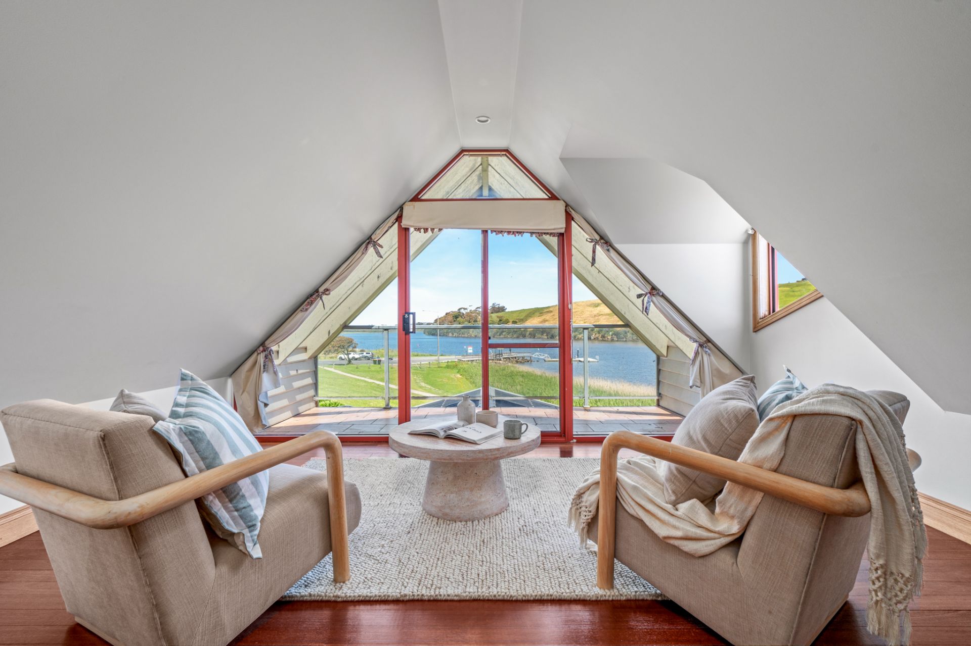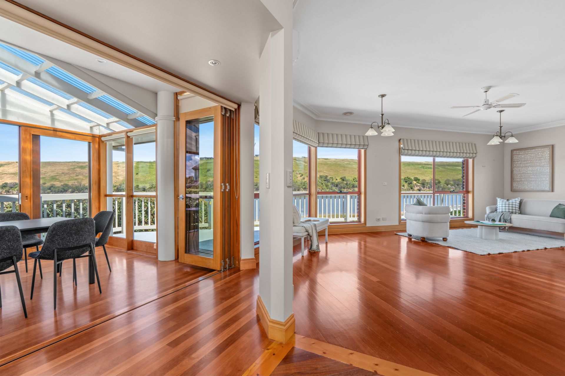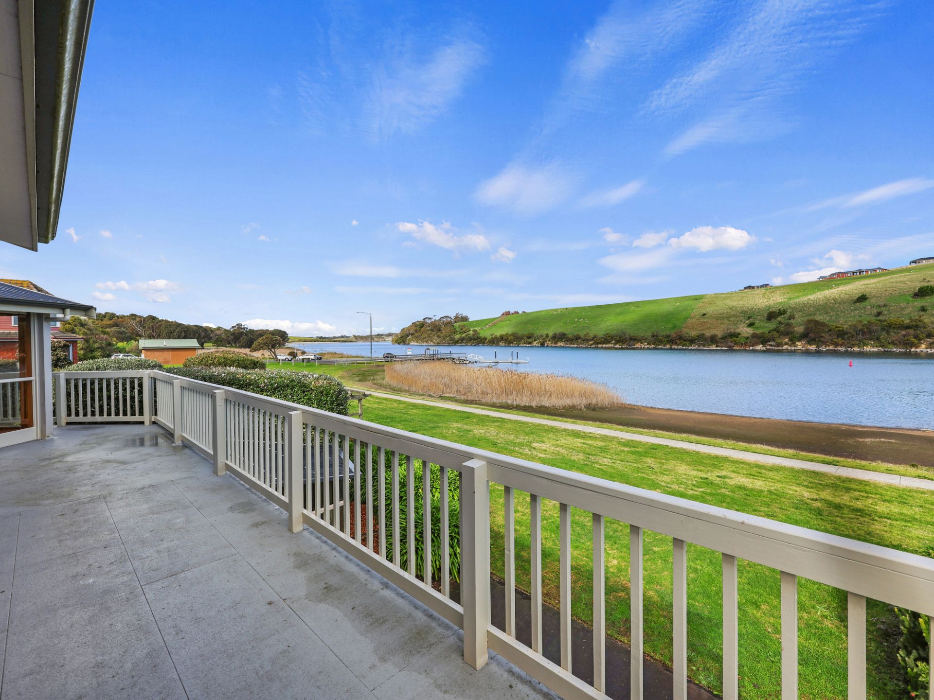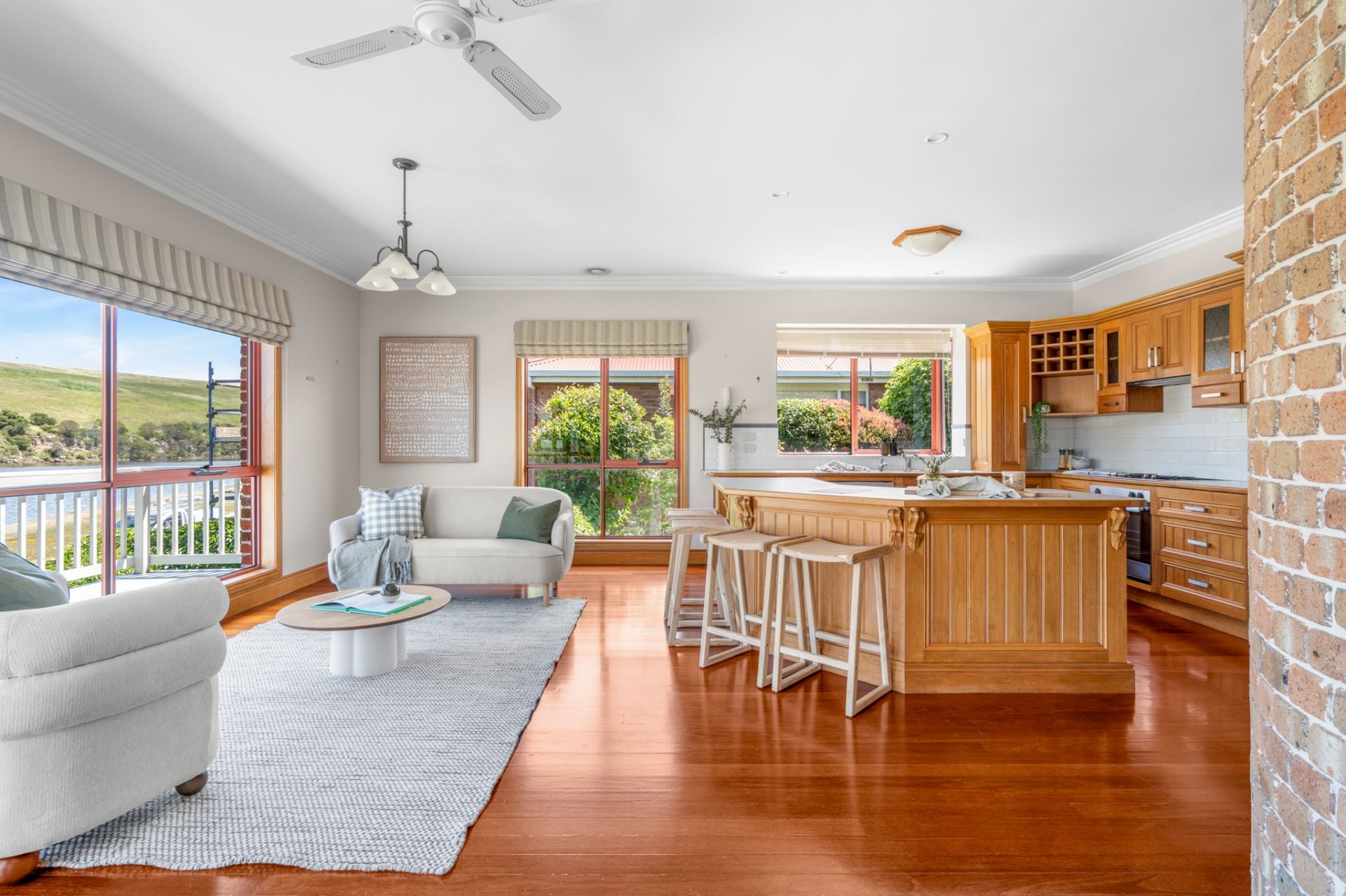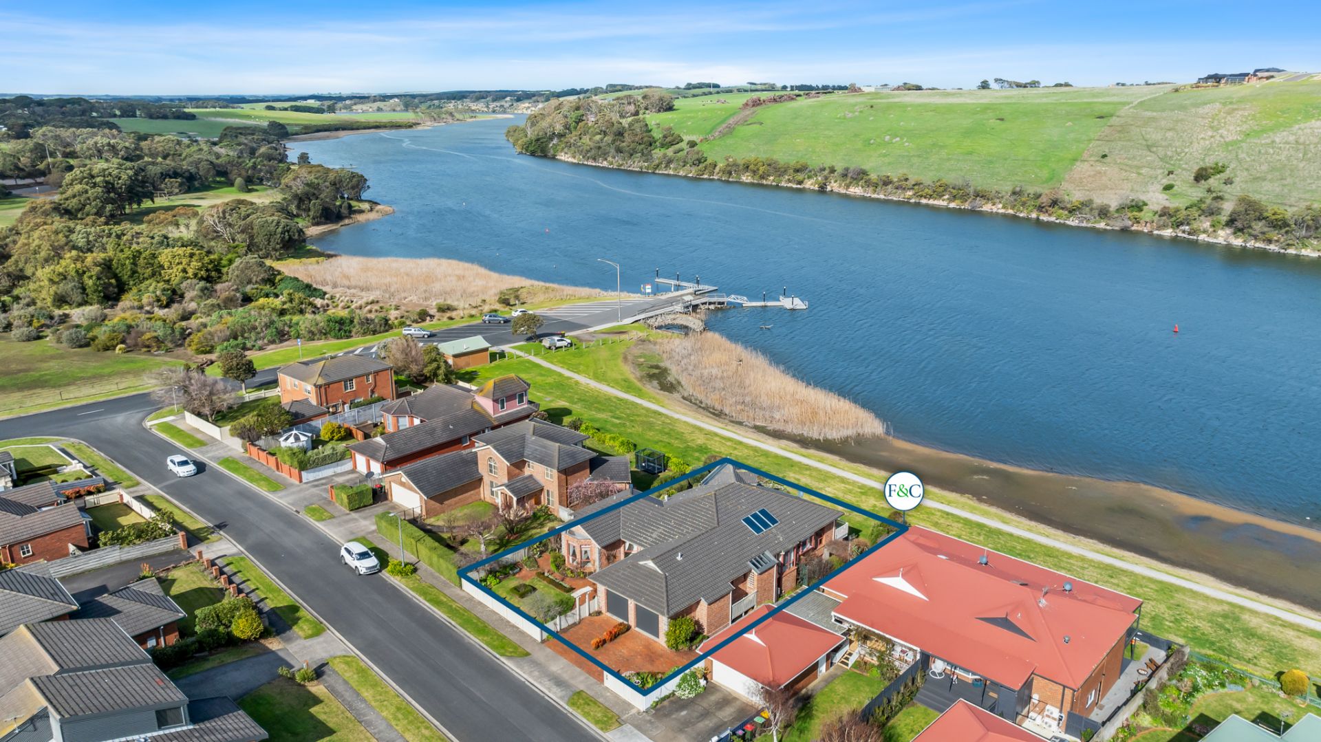 This exceptional craftsman-built family home on the banks of the "Hopkins River" An elegant entry vestibule introduces the home's spacious interiors, The comprises open plan kitchen dining and living rooms both formal and informal all have amazing river views, the polished hardwood Sydney Gum flooring flows through the expansive main living area that connects via bi-fold timber and glass doors to the central undercover alfresco area, perfect for all-seasons dining and entertaining. As you walk up the handcrafted curved timber staircase to the turret which accommodates the study/Library, a great place to daydream as you watch the river gently flow on by. Then you have four bedrooms, the master with a walk-in robe and ensuite with views of the river and balcony access, a guest bedroom with built-in robes, two further bedrooms also with built-in robes serviced by a central family bathroom and separate toilet.