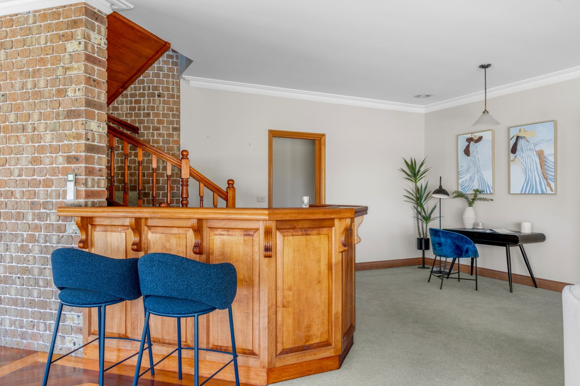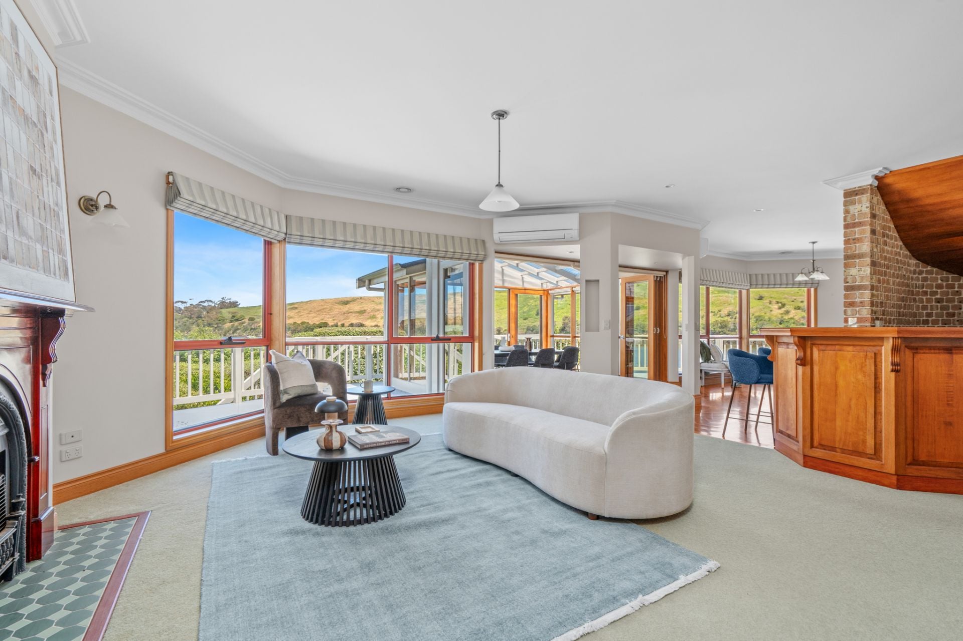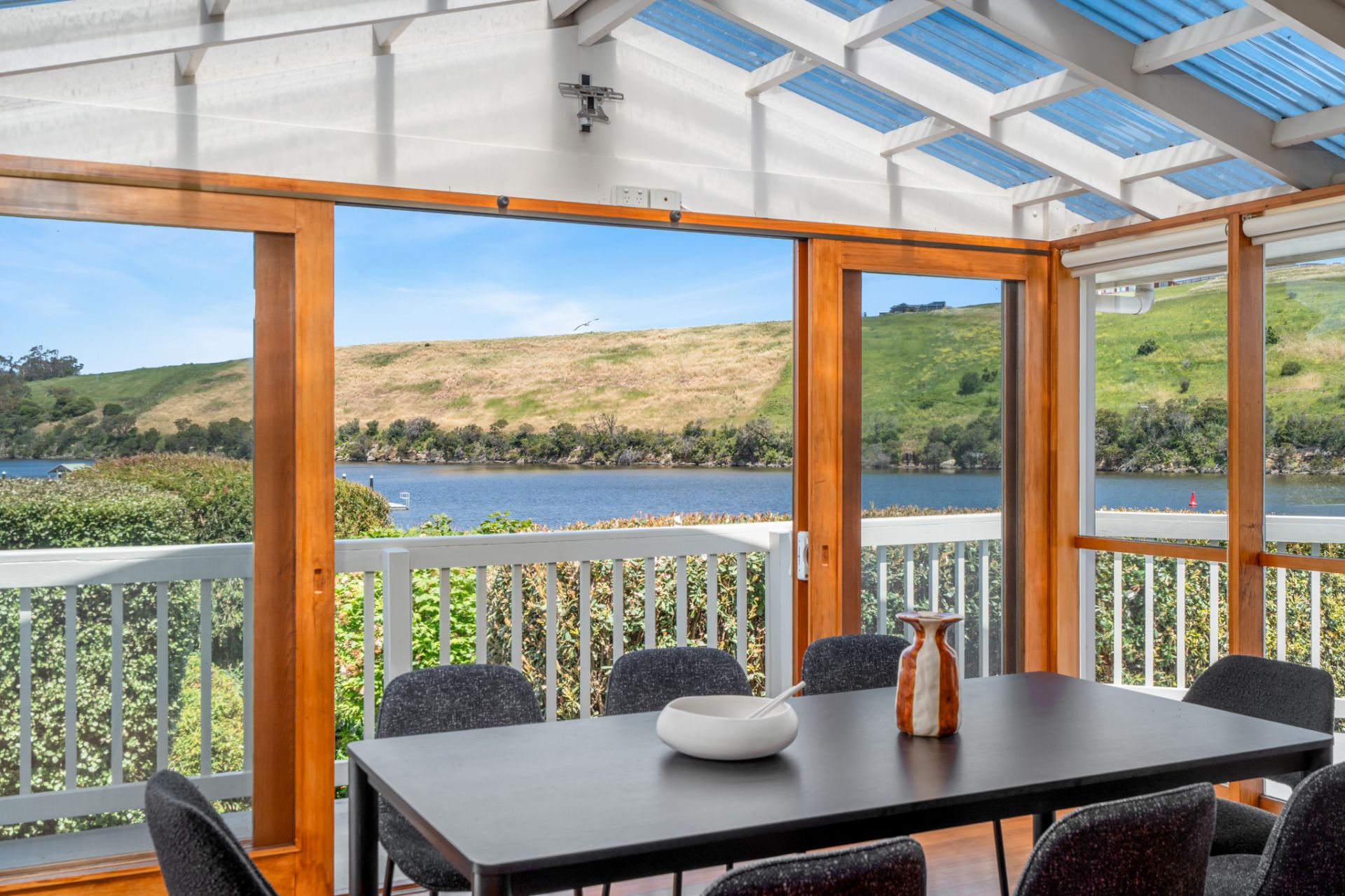 The basement houses a guest suite including a sitting room with wood heater, a bedroom and a bathroom. You then have the adjoining 5 car garage separate workshop and storage room with vehicle access from the street. On a whopping 812m2 of prime river front residential land. Finally, the oversized double garage with direct access to the home via the large country style laundry.