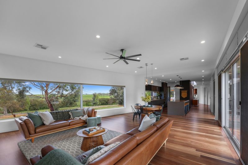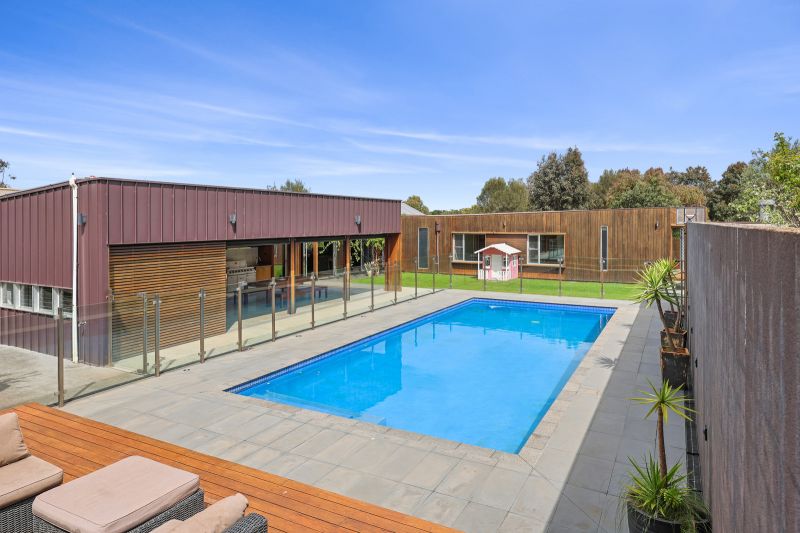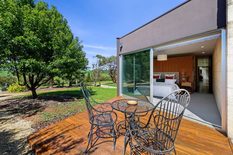This stunning architecturally designed contemporary home on 46 acres of prime farming land boasts many lifestyle extras including a large swimming pool (solar and gas heated), pizza oven, guest house/studio, 4 bay shed, large water tank, bore, new stock yards, established gardens with orchard, vegetable/herb gardens and a poultry pen.