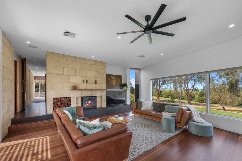 Step into a beautiful, warm and welcoming home where every detail has been thoughtfully designed and finished to a high standard. From Western Australian limestone walls and fireplace to the rich tones of spotted gum timber and bluestone flooring, curved walls, light wells, windows positioned to capture seasonal light and rural views, to a north facing courtyard/entertainment/pool area, this home exudes space, quality and comfort.